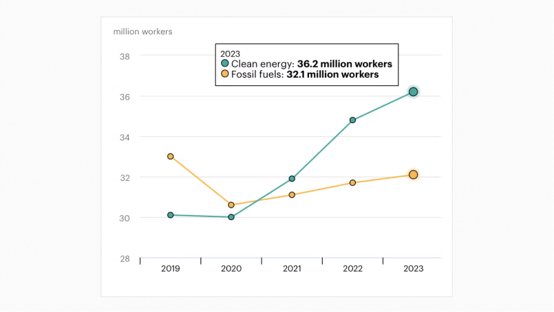- Annual investment in clean energy has surpassed fossil fuel investments.