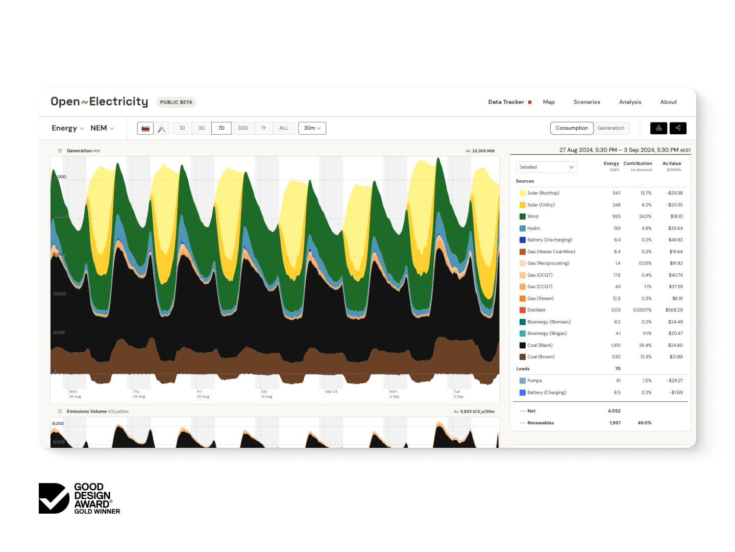 Open Electricity enhances public access to National Electricity Market (NEM) and Wholesale Electricity Market (WEM) data, aiming to improve energy literacy and facilitate informed discussions on Australia’s energy transition for the long-term benefit of consumers.