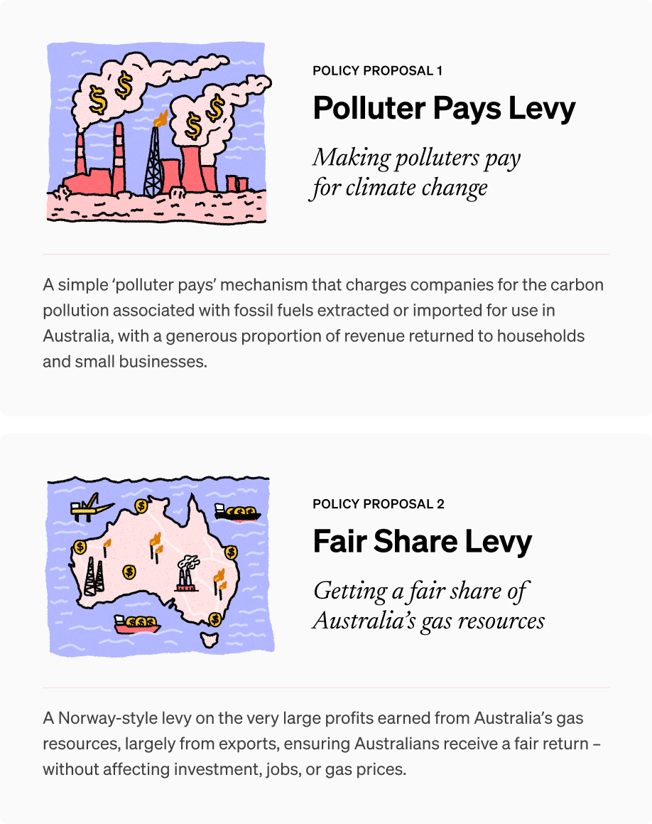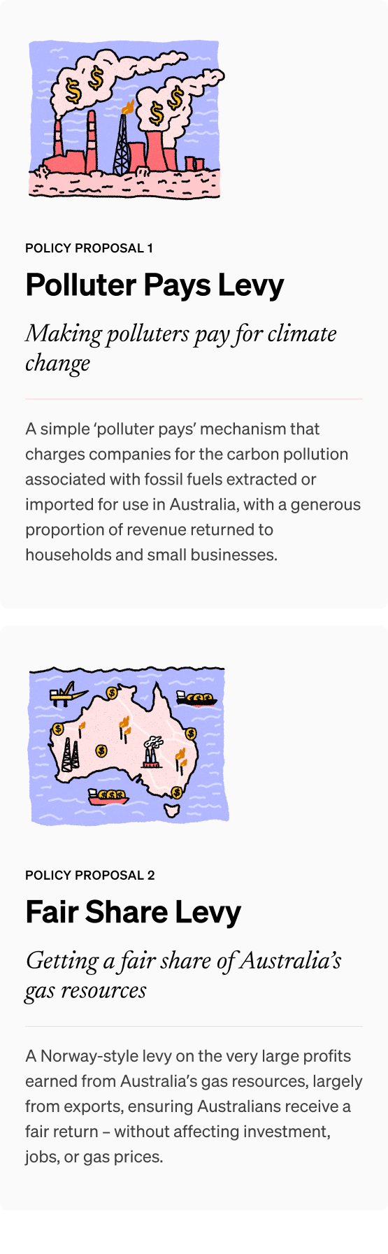 The Polluter Pays Levy and Fair Share Levy reflect these principles in their design. Both focus responsibility on large emitters and resource exporters rather than households, while generating public revenue that can be used to support households, strengthen public finances, and invest in Australia’s economic transition. In this way, the policies align with public expectations around fairness and cost-of-living protection, while addressing the structural challenges of emissions reduction, budget repair, and long-term economic resilience.